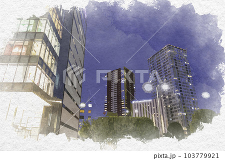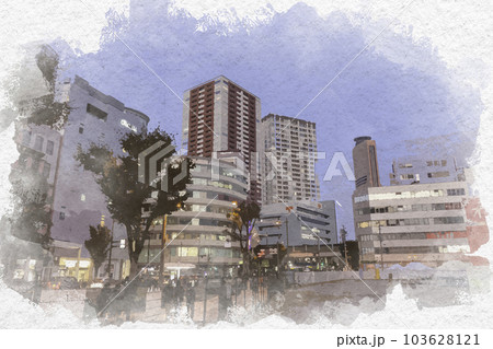 水彩風格濱松市區濱松 Act Tower 靜岡縣濱松市