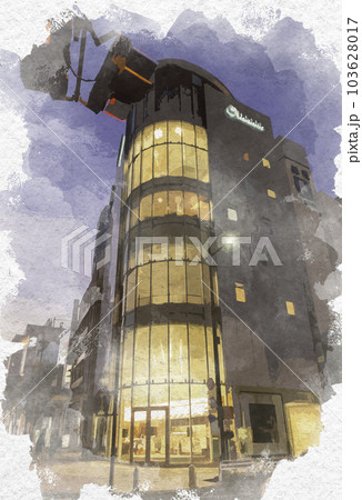 水彩風格濱松市區濱松站遠鐵百貨商店靜岡縣濱松市