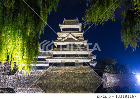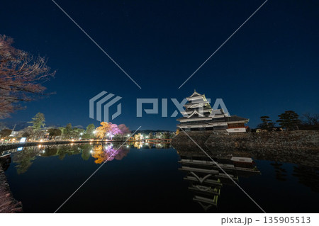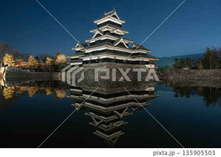 【夜景素材】晴朗冬日月光下的松本城【長野縣】