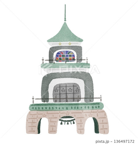 水彩風格 清尊閣 奧方宮 石川縣金澤市