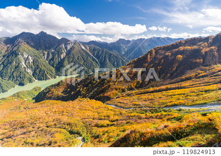 立山黑部阿爾卑斯山脈路線、黑部湖、秋季氣氛、富山縣