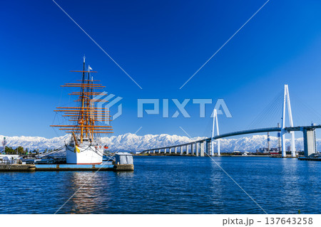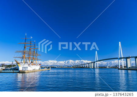 從名護之浦橋可以欣賞到新港大橋和立山山脈的壯麗景色。