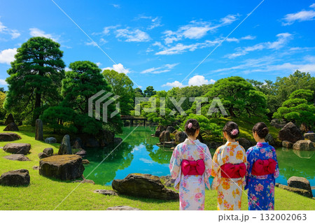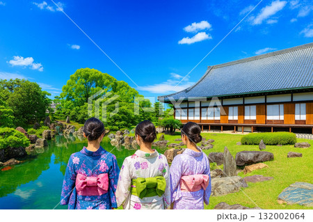 三寶院庭園、醍醐寺、嫩葉新綠、浴衣女子