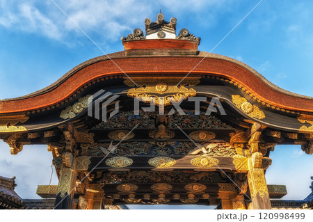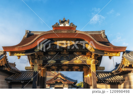 京都 舊離宮二條城唐門在藍天的襯托下熠熠生輝