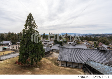 [奈良縣] 從院內看到的法隆寺參道和南門