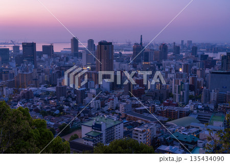 兵庫縣:黎明時分的神戶維納斯橋與諏訪山公園展望台