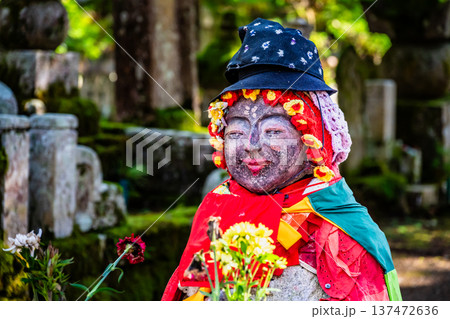 高野山奧之院:寺廟入口處的化妝地藏菩薩像