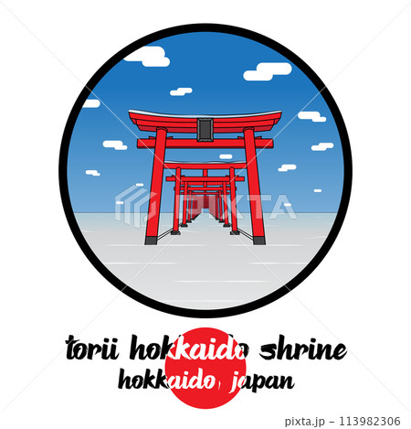 Circle Icon Torii Hokkaido Shrine. Vector illustration