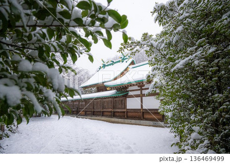 雨中的出雲大社,島根縣,主殿西側圍牆景色。