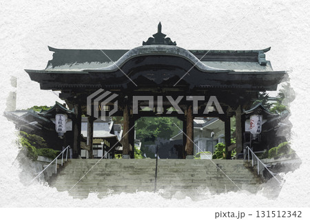 水彩畫風格:岡山縣總社市三門井山般若院