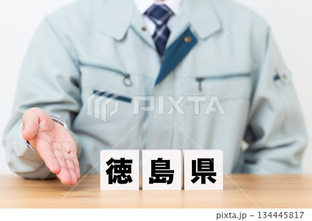 德島縣街區,一位身穿工作服的中年男性商務人士