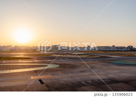 福岡機場跑道傍晚日落