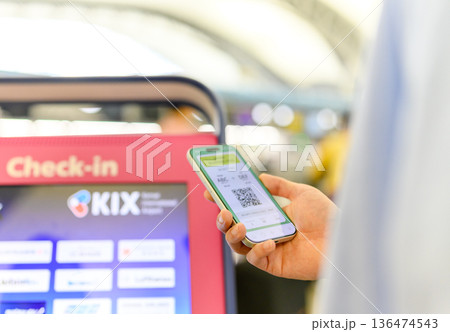 請出示您智慧型手機上的電子登機證。圖片由關西國際機場(KIX)提供。
