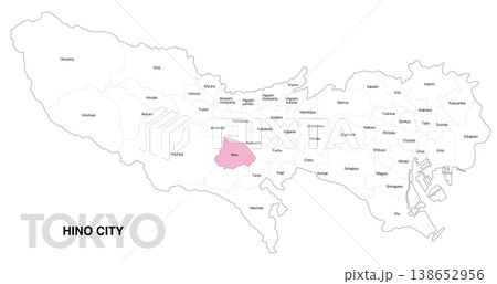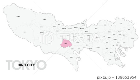 [日本地圖] 日野市、東京都地點地圖,標示城市/區名(英文)