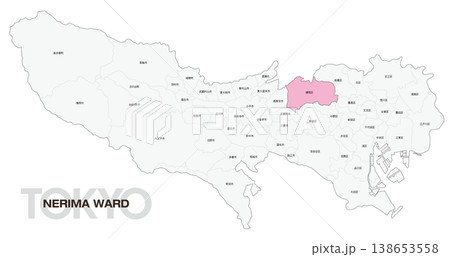 [日本地圖] 東京都豐島區位置圖,包括各市町村名稱(英文)