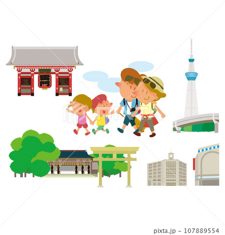 一個外國家庭在東京觀光的插圖集