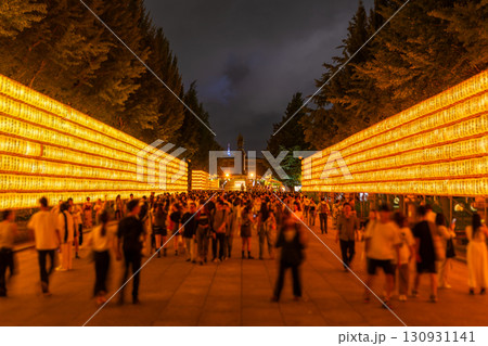 日本東京的街景戰爭結束的那一天...我們不會重演悲劇...馬的身影消失了...人們低頭的景象...=八月,靖國神社