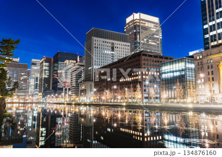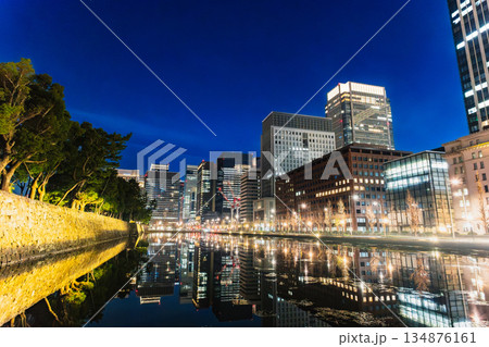 東京丸之內和皇居護城河的夜景