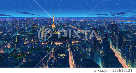 東京鐵塔閃耀,廣闊的城市夜景,摩天大樓林立。