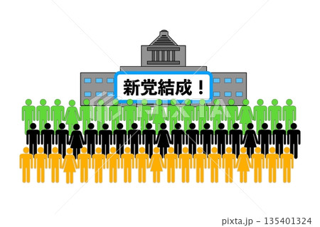 日本政治家/立法者選舉和西裝握手的圖標插圖_國會議事堂/年輕男性人物設定