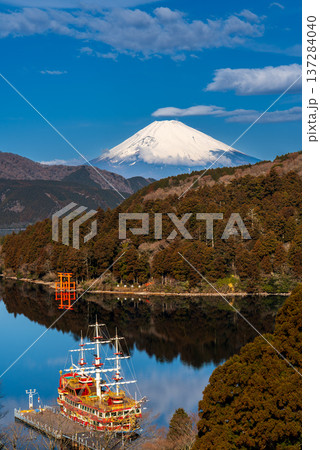 神奈川縣秋季箱根海盜船和富士山