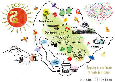 2025年箱根賀年卡觀光景點插畫圖