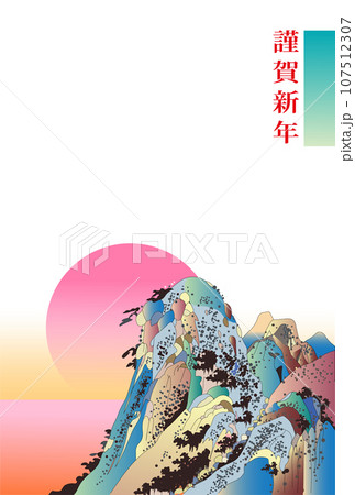 浮世繪風景新年賀卡插畫素材
