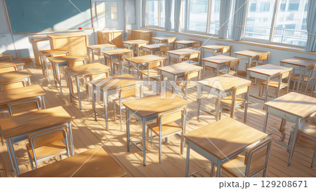 夕陽映照下的木質教室|充滿懷舊與寧靜的學習空間