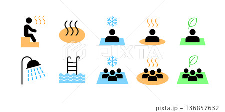 三溫暖、溫泉、水療中心、公共浴池等圖示集。