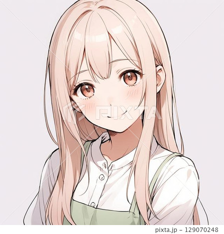 繫著圍裙、溫柔微笑的年輕女保育員(白色背景)