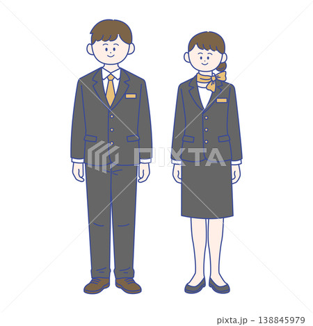 飯店員工 - 飯店制服 - 男女 - 全身 - 站姿插圖人物向量圖,白色背景素材