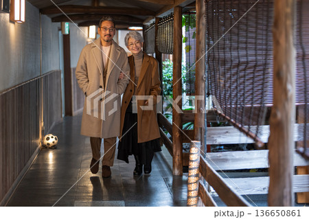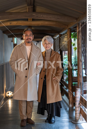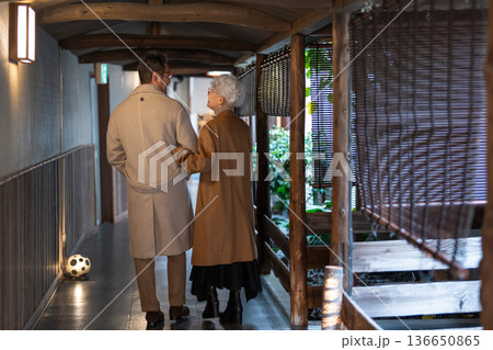 一對老年夫婦正在享受溫泉之旅。照片由伊藤綠葉提供。