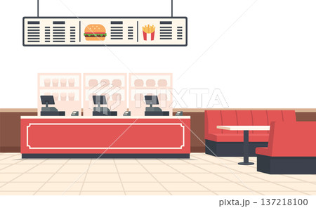 Fast food restaurant counter and interior illustration