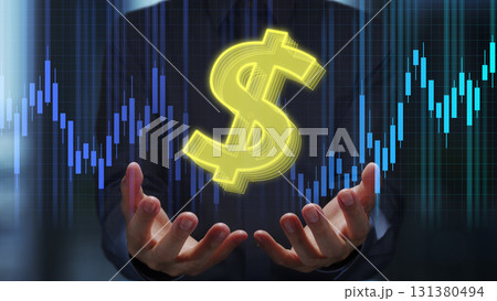帶有美元符號的燭台圖。金融市場的匯率。帶有$符號的外匯交易員。