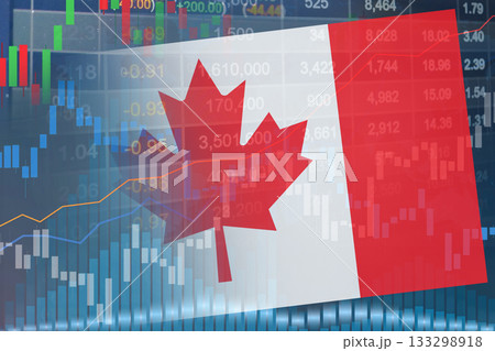 Stock market investment trading financial, coin and Canada flag or Forex for analyze profit finance business trend data.