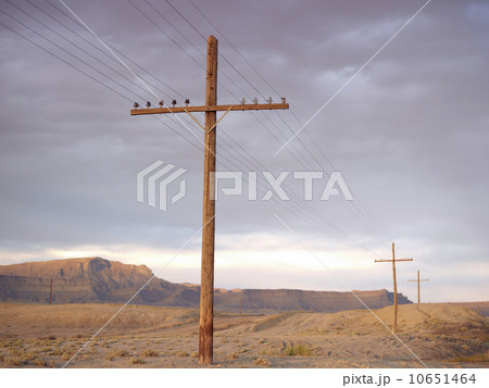 USA, Utah, Desert landscape with power lines