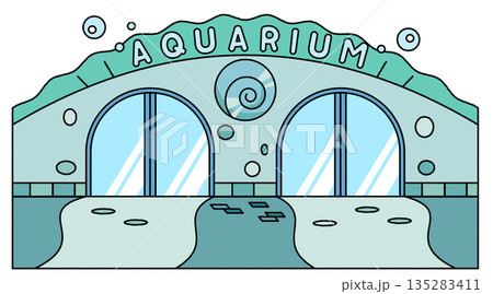 一幅簡潔可愛的水族館建築外觀插圖