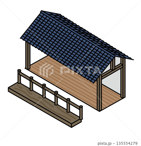 公園或旅遊設施內安裝的有頂廣場或涼亭的插圖素材