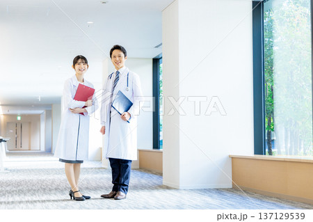醫院走廊的醫生、醫生、醫護人員、醫生、藥劑師、科學家和研究人員的男女