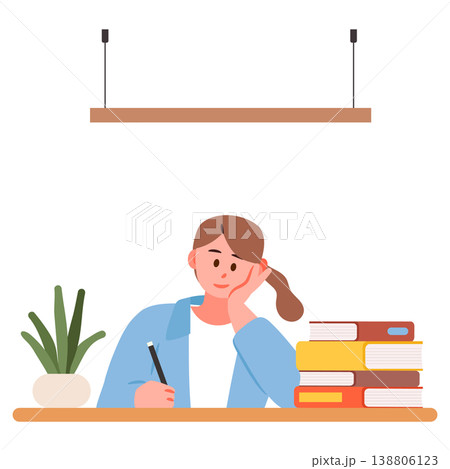 College student concept. Teenager reads book, studies subject from textbook situation. Pupil learns in library people scene. Vector illustration with flat character design for website and mobile site