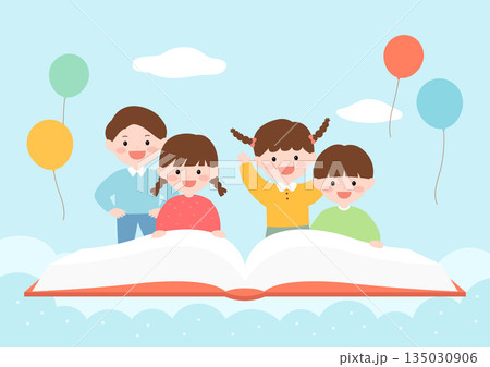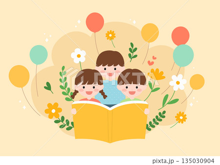 兒童閱讀與家庭朗讀的花環框架素材插畫
