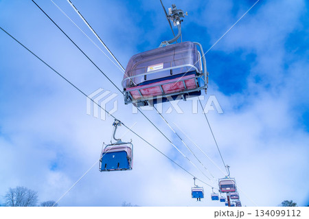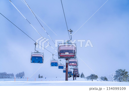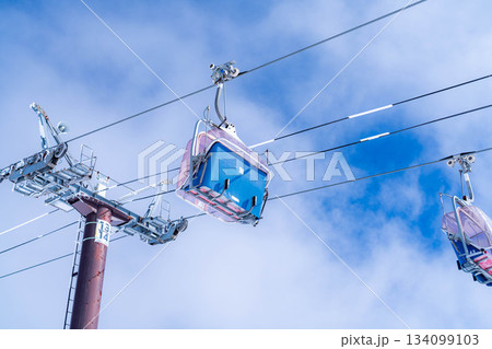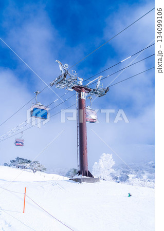 [冬季素材]滑雪場纜車和藍天[長野縣]