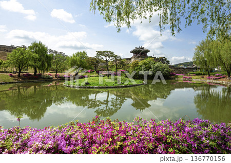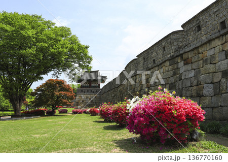 Spring scenery of Suwon Hwaseong Fortress, Suwon-si, South Korea.