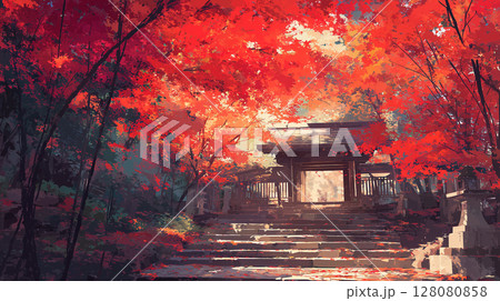插畫資料:被秋葉包圍的神社