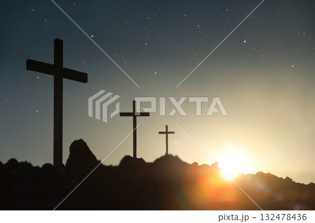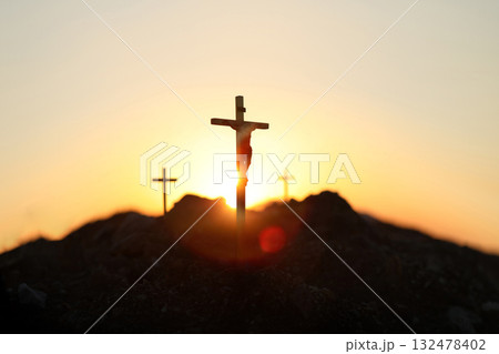 Calvary Hill, the cross symbolizing the death and resurrection of Jesus Christ, Holy Week background