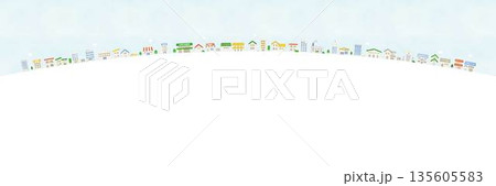 水彩風格的弧形城市景觀背景插圖