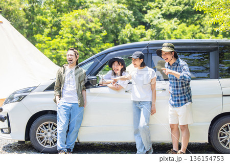 山梨縣本棲湖畔露營地的風景