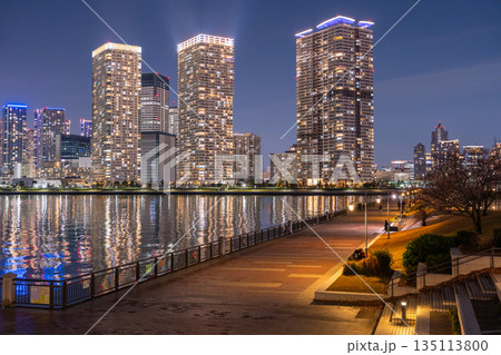 東京:豐洲古魯裡公園和晴見塔樓公寓的夜景
