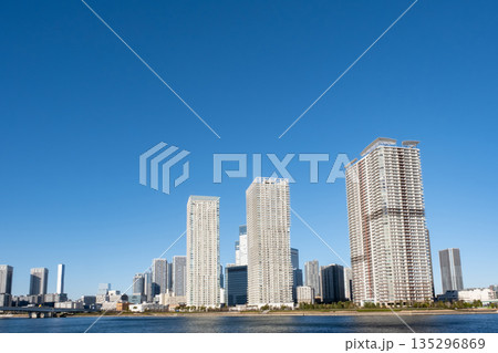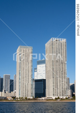 從築地方向眺望東京灣晴海的高樓公寓大樓