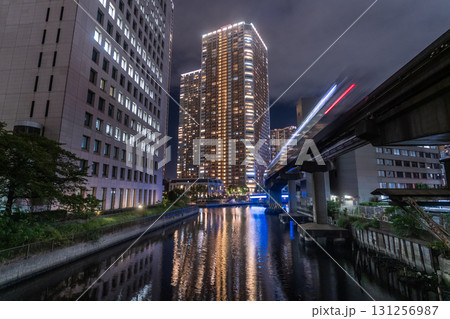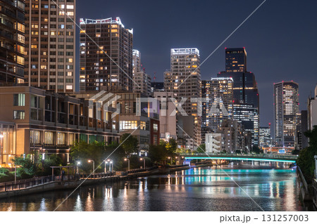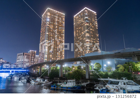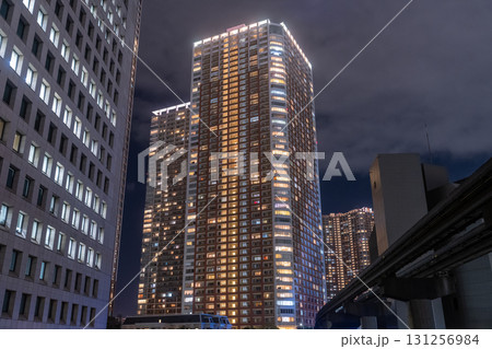 東京:港區芝浦灣地區的塔樓公寓夜景